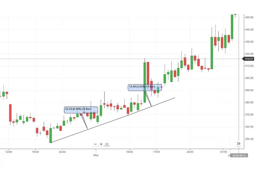 در اولین مرحله، باید جهت حرکت کلی بازار را تعیین کنیم. این کار از طریق ابزارهایی مثل تحلیل تکنیکال و الگوهای قیمتی انجام میشود.